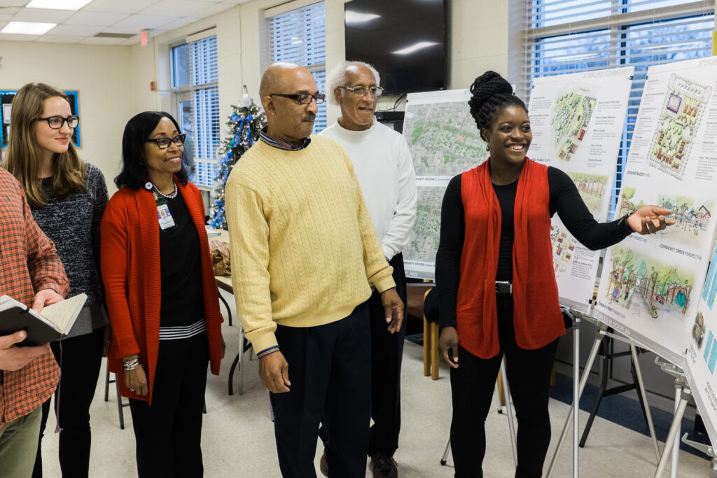The Sterling neighborhood of Greenville, SC was once home to a vibrant and flourishing African American community. Following a fire at the Sterling High School, many residents moved, leaving the community to deteriorate over time. While Sterling experienced rising crime rates and increasing blight, the neighborhood now is vulnerable to gentrification pressure from nearby downtown Greenville. The Sterling Land Trust, founded in 2010 was the first community land trust in South Carolina and exemplifies community-led change. Focusing on neighborhood sustainability, grassroots organizing, and developing commercial and residential real estate, the land trust relies on residents to lead the charge in revitalizing this treasured community.